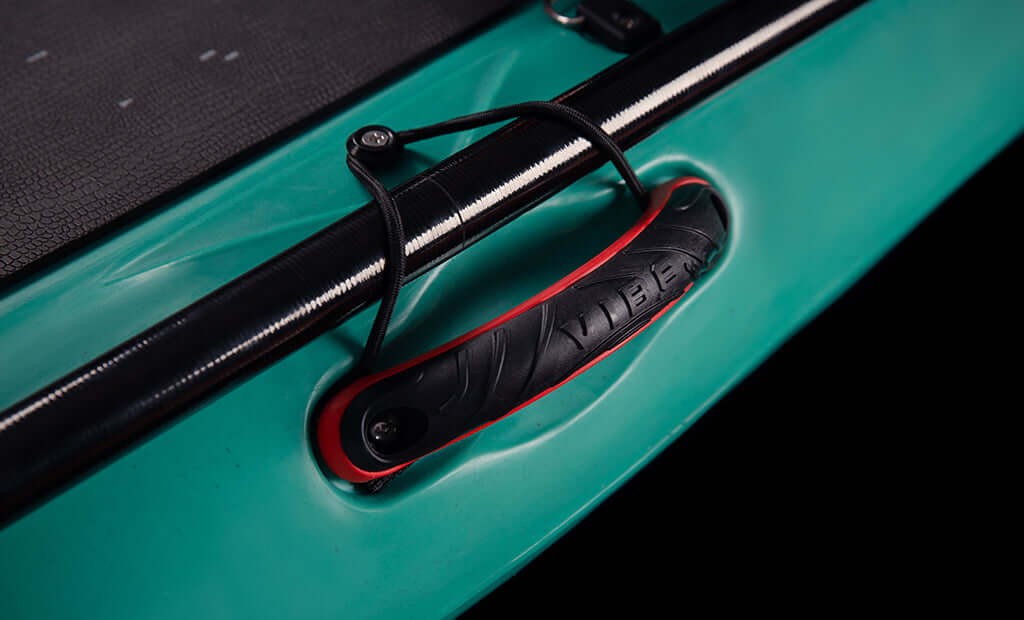Four Vibe Phantom Grip handles at key carry points offer a comfortable grip, eliminate pinch points, and the bungee paddle park secures the paddle.