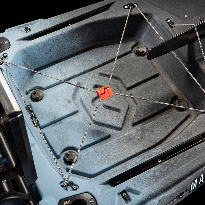 The Flex-Top Cover provides ample gear security for the spacious front cargo well while also offering a quick place to park your paddle or stakeout pole when switching from paddling to casting.