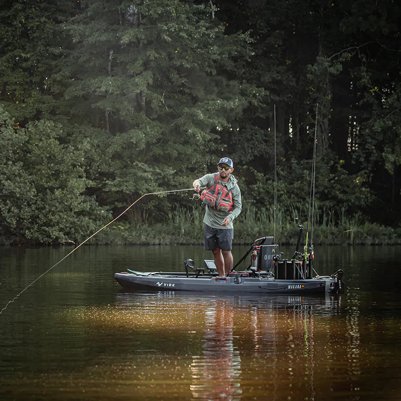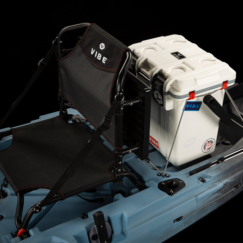 Includes the dual-position Vibe Hero Seat. The breathable mesh fabric dries quickly, ensuring both you and your seat stay dry. Adjustable straps allow you to create your most comfortable back support position so you can fish all day (compatible with the optional Summit Perch).