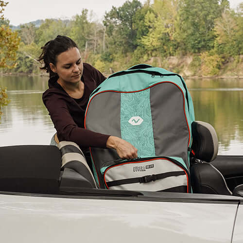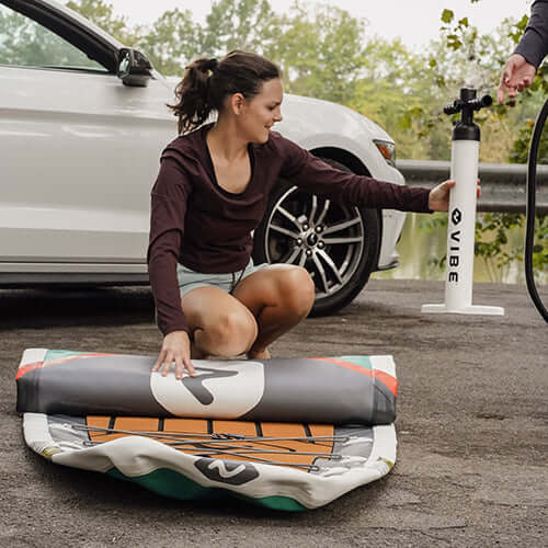 Vibe's lightweight dual-function hand pump is easy to use for inflating and deflating quickly. Store the included pump inside the bag or attach it to the side for easy transportation.