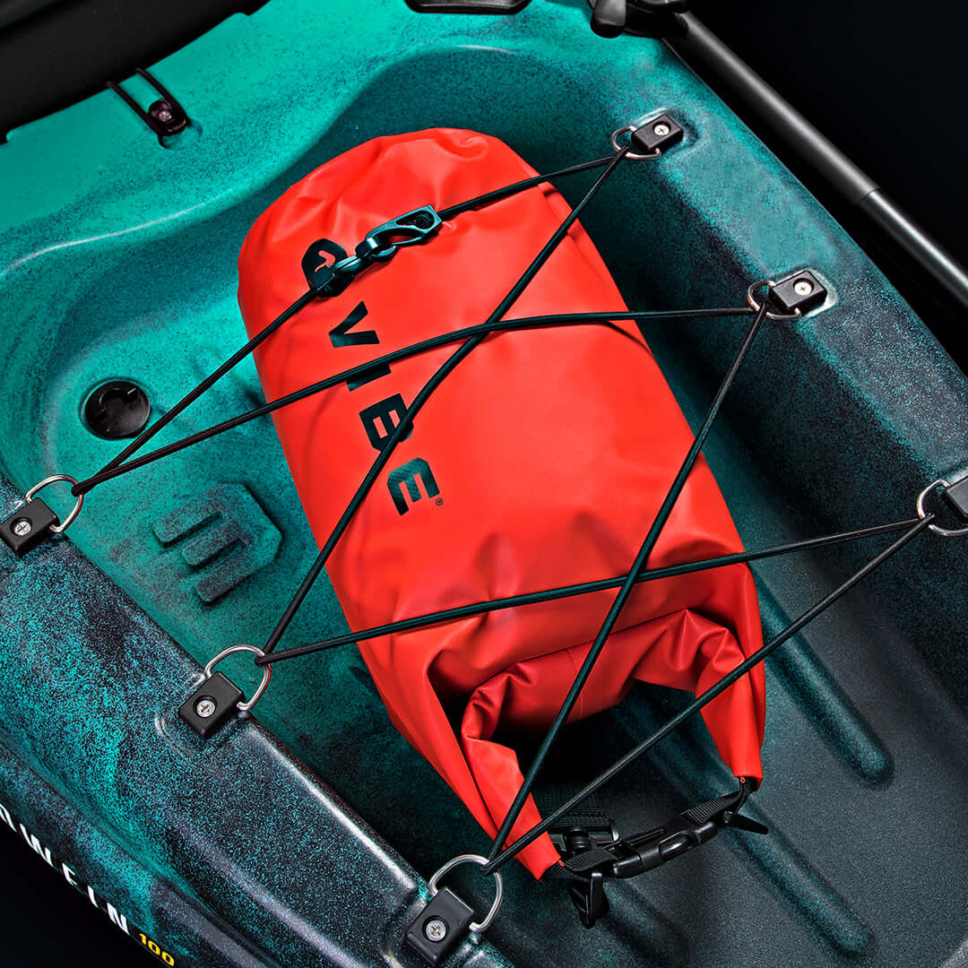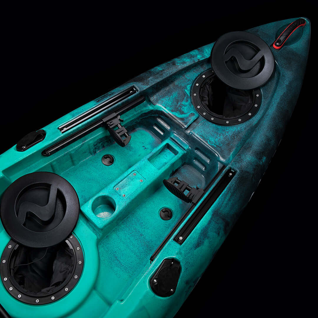 Includes two sealed 8-inch V-Wave deck plates with waterproof cargo bag inserts to hold all your essentials. Comfortable, adjustable foot braces create a comfortable paddling experience.