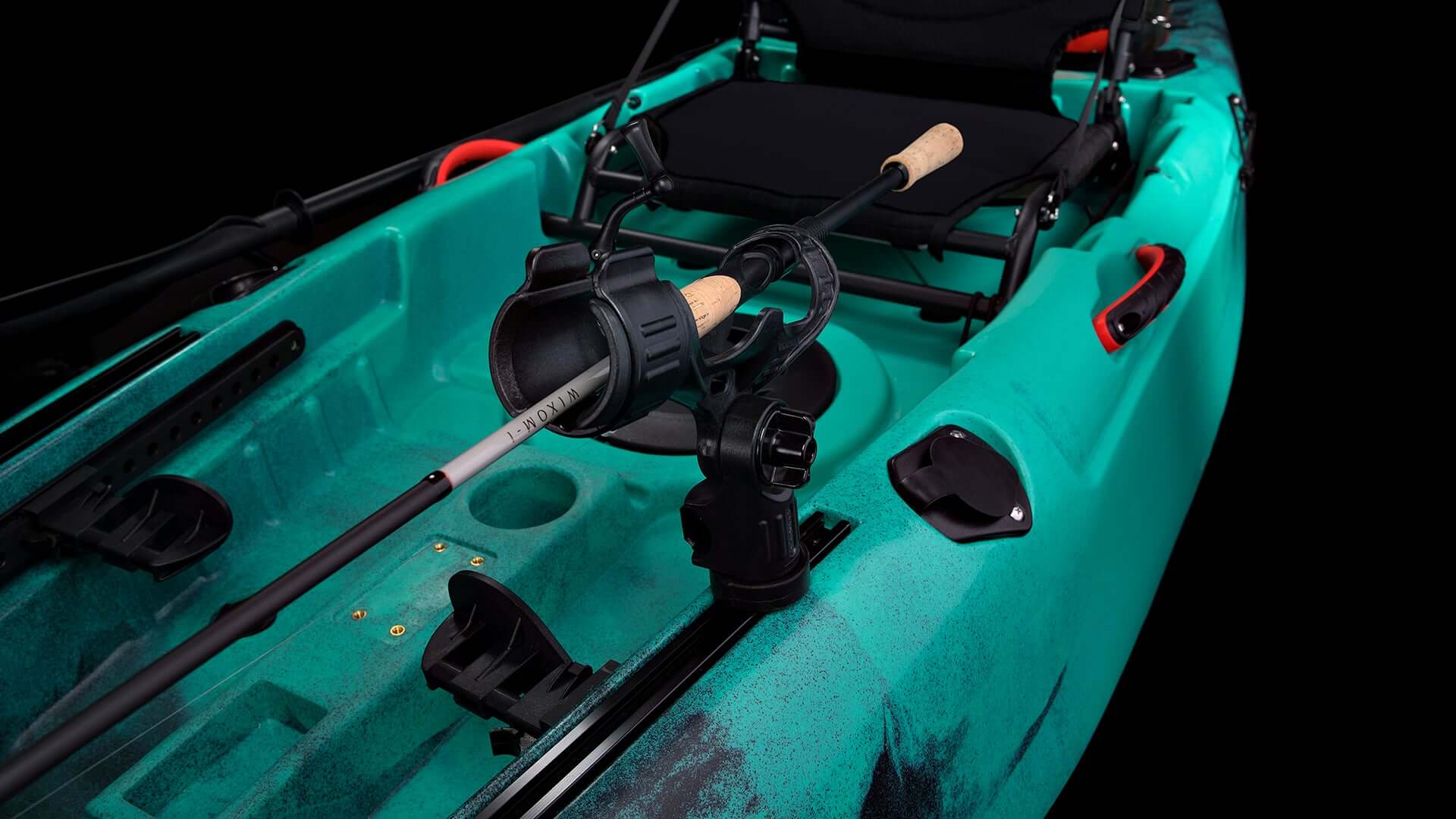 Two integrated top-loading gear tracks make rigging a breeze, while two flush mount rod holders in the front and two in the back are ready to hold rods out of your way while paddling.