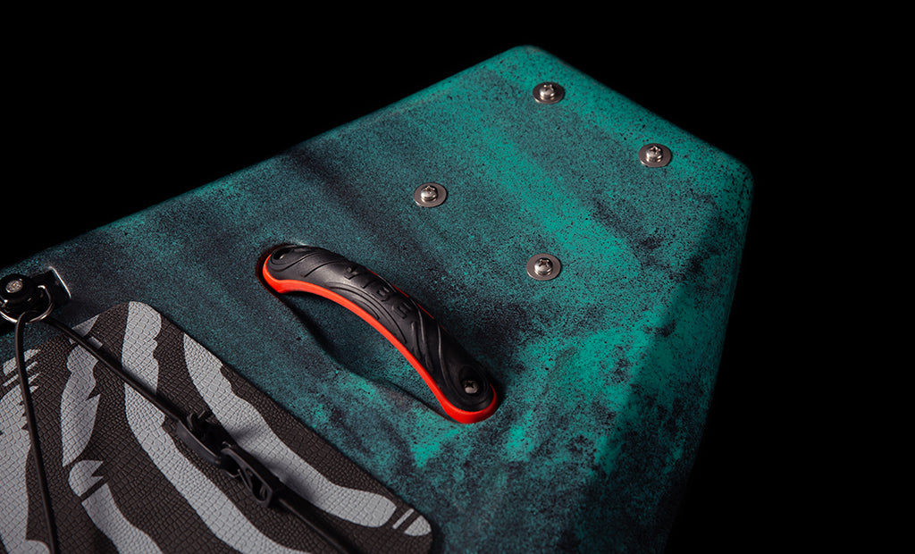 Les quatre poignées Vibe Phantom situées à des endroits clés offrent une prise en main confortable, éliminent les points de pincement et l'élastique paddle park permet de sécuriser la pagaie.