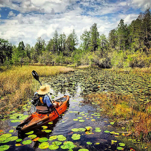 Le couvercle Flex-Top assure la sécurité de l'équipement dans le compartiment de chargement avant spacieux, tout en offrant un endroit pratique pour garer rapidement votre pagaie ou votre perche lorsque vous passez de la pagaie à la pêche au lancer.