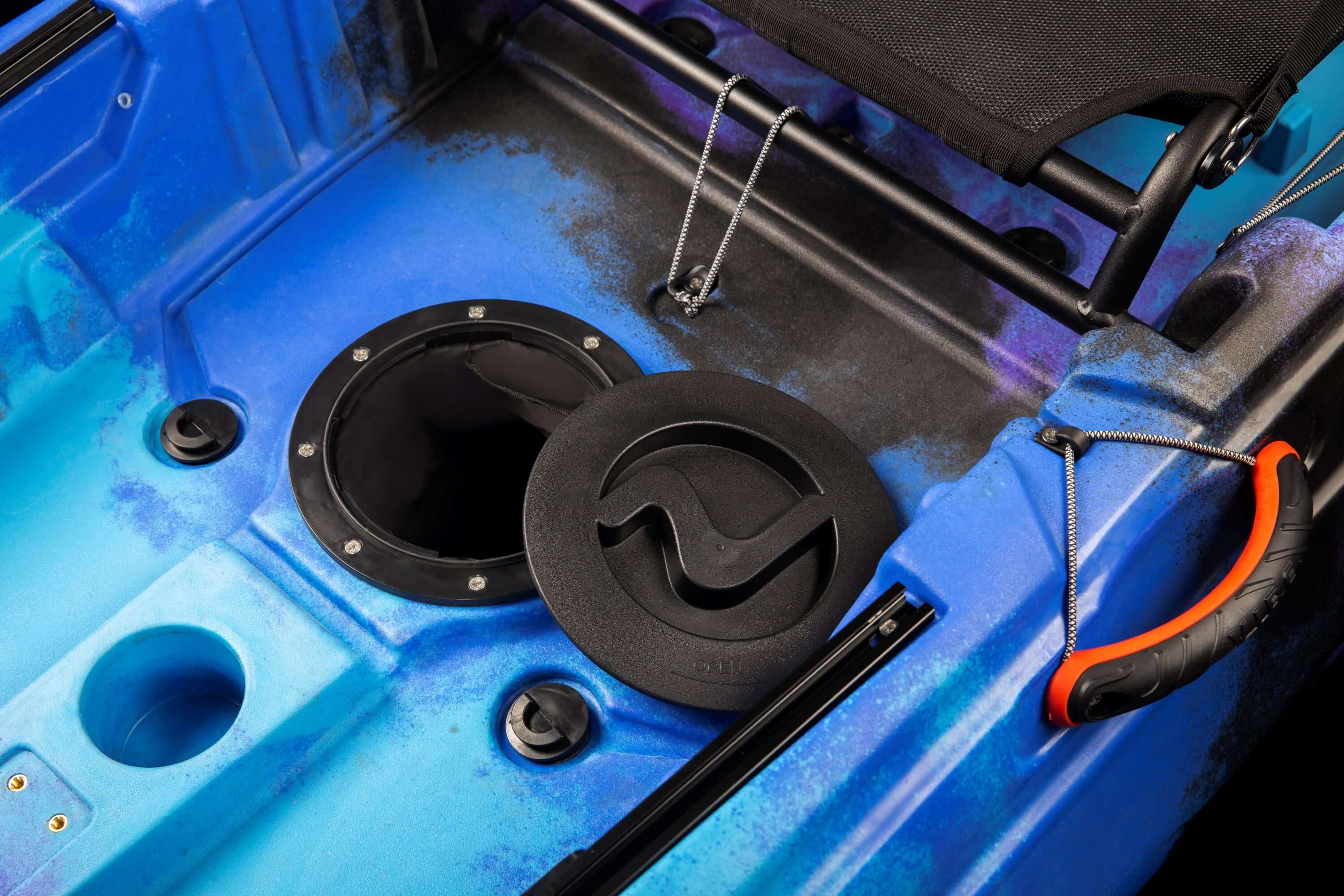 Le pont offre de nombreuses options de rangement, notamment une plaque de pont V-Wave scellée de 6 pouces avec un sac de transport étanche, un porte-gobelet intégré et un plateau pour le changement rapide de matériel. De plus, il y a un support pour les accessoires de base rectangulaires.