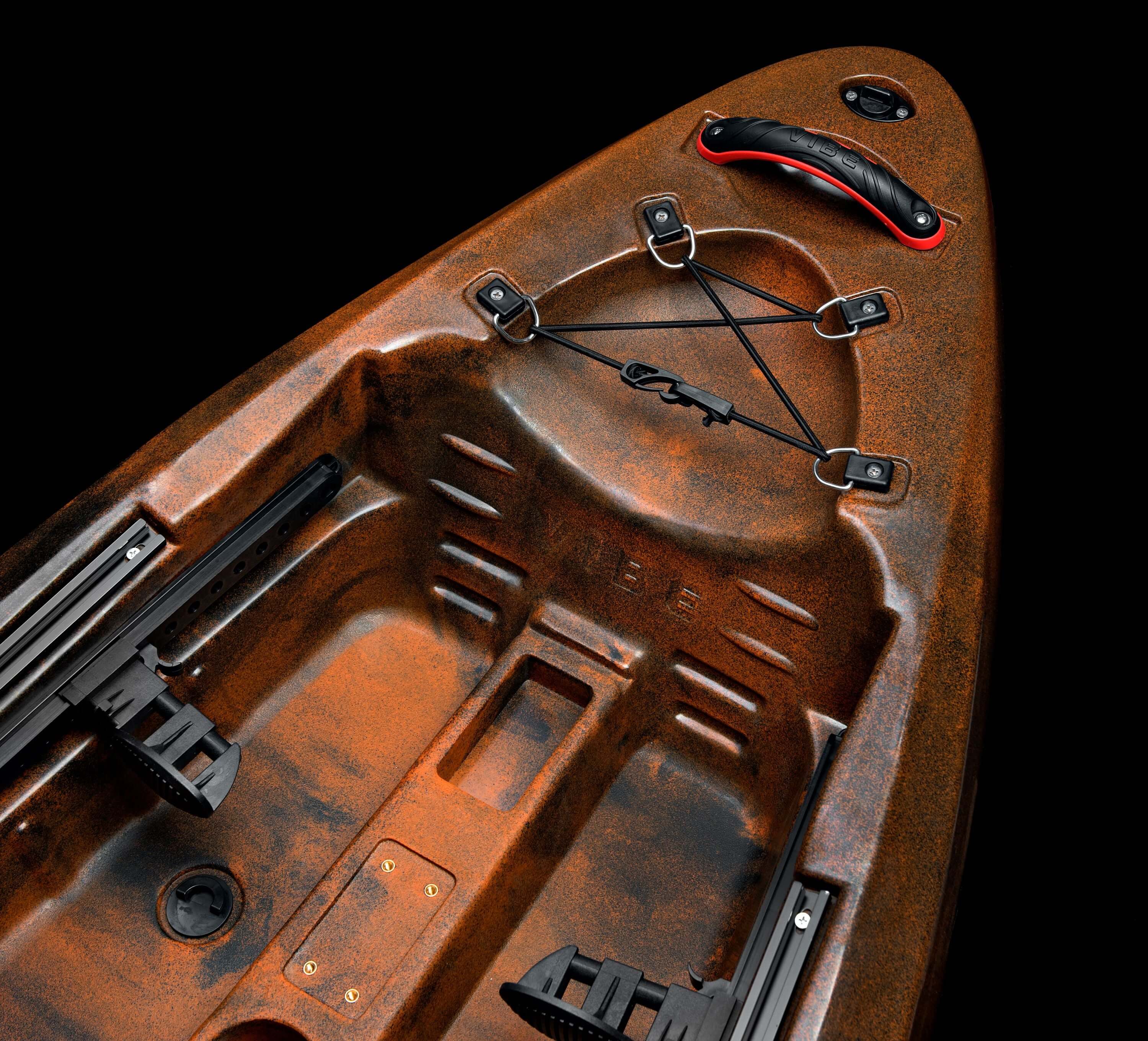 Quatre poignées de transport Vibe Phantom offrent une prise en main confortable et préviennent les points de pincement. Et parce que personne ne veut se retrouver sans pagaie, deux supports de pagaie montés sur le côté gardent votre pagaie en sécurité lorsque vous avez les mains chargées.