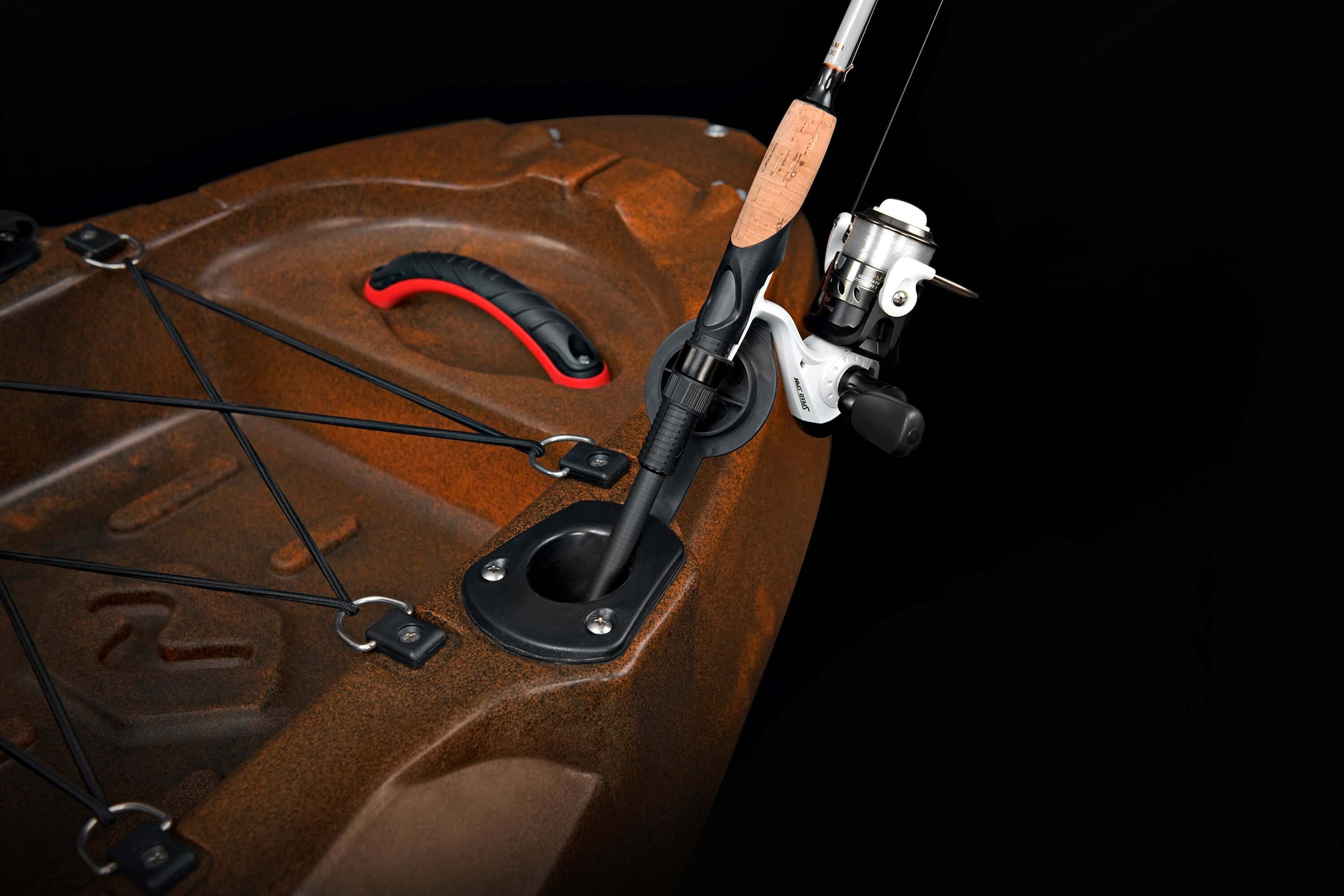 Le pont peu profond offre de nombreuses possibilités de rangement, notamment une plaque de pont V-Wave scellée de 8 pouces avec un sac de transport étanche, un porte-gobelet intégré et un plateau de rangement pour le changement rapide de matériel. De plus, il comporte un support pour les accessoires à base rectangulaire.