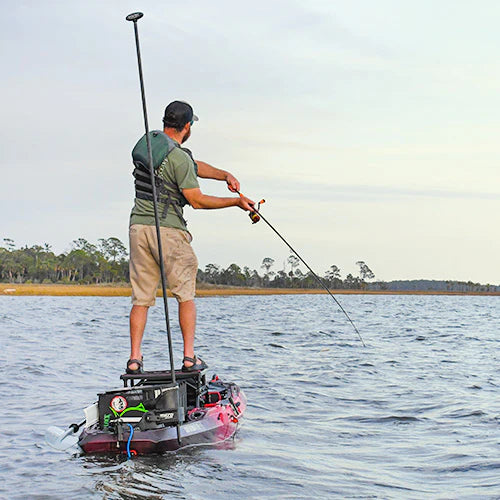 Accommodates four 7-foot rods flush on the gunwale, providing ample casting, paddling, and work space.