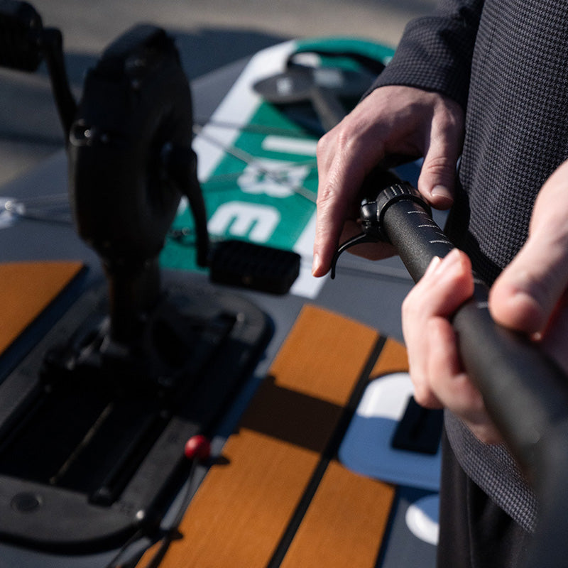 The rudder system includes a steering handle and cables to make the Uptown 100 Lite advanced in tracking and maneuverability never before seen in an inflatable kayak.
