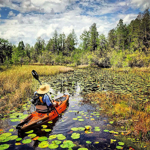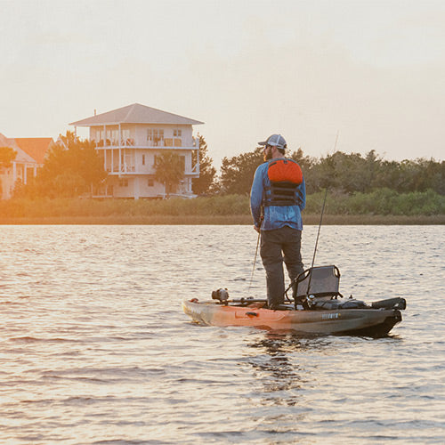Flex-Top Cover ensures ample gear security for the spacious front cargo well, while also providing a convenient spot to quickly park your paddle or stake out pole when transitioning from paddling to casting.